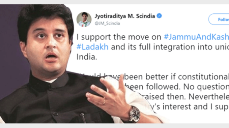 കശ്മീരിന്റെ 370-ാം വകുപ്പ് റദ്ദാക്കല്‍: അനുകൂലിക്കുന്നു, ഭരണഘടനാ നടപടികള്‍ മികച്ച രീതിയില്‍ നടപ്പാക്കുന്ന കേന്ദ്ര നടപടിയെ എങ്ങനെ ചോദ്യം ചെയ്യുമെന്ന് ജ്യോതിരാദിത്യ സിന്ധ്യ