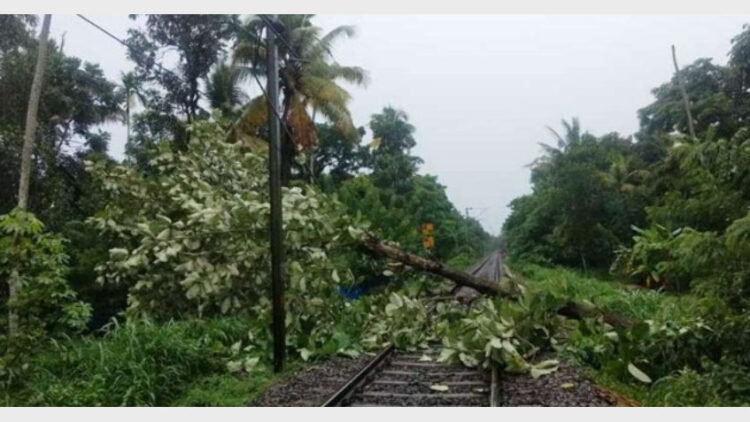 റെയില്‍വെ പാളത്തിലേക്ക് മരം വീണതിനെ തുടര്‍ന്ന് മാവേലി എക്സ്പ്രസ് ചേര്‍ത്തല റെയില്‍വെ സ്‌റ്റേഷനില്‍ മണിക്കൂറുകളോളം പിടിച്ചിട്ടു. യാത്രക്കാര്‍ വലഞ്ഞു.