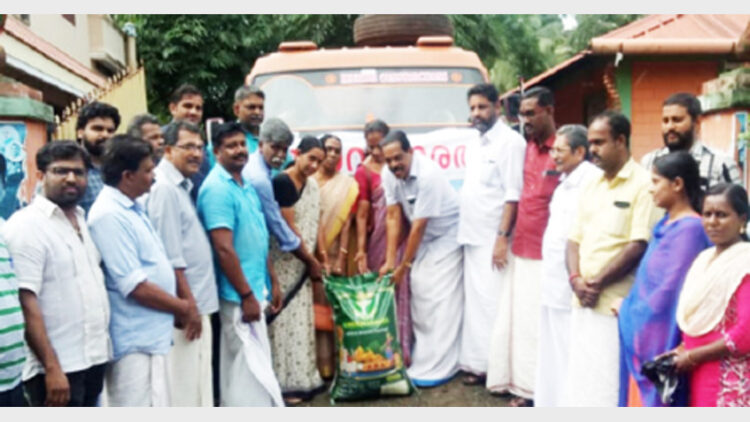 ഉല്പ്പന്ന ശേഖരണത്തിന്റെ ഉദ്ഘാടനം കേരളാ കോണ്ഗ്രസ് സംസ്ഥാന വൈസ് ചെയര്മാനും നഗരസഭാ കൗണ്സിലറുമായ രാജന് കണ്ണാട്ട് ഒരുചാക്ക് അരി നല്കി നിര്വ്വഹിച്ചു.