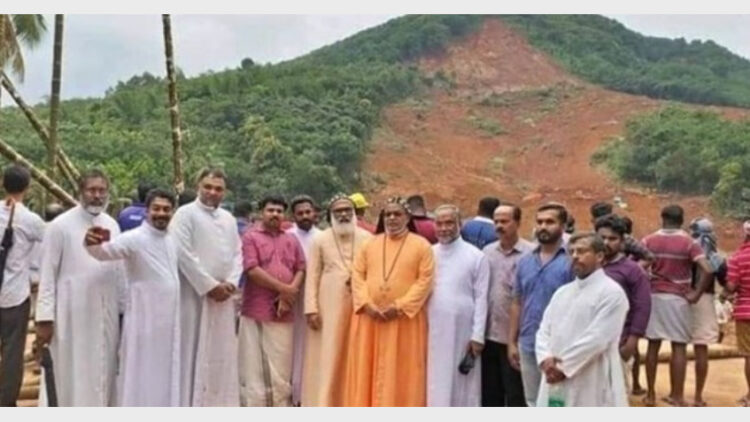 കവളപ്പാറയില്‍ തകര്‍ന്ന് കിടക്കുന്ന വീടിന്റെ മുകളില്‍ കയറി ക്രൈസ്തവ പുരോഹിതരുടെ ദുരന്ത സെല്‍ഫി; ശവംതീനികളെന്ന് സോഷ്യല്‍ മീഡിയ