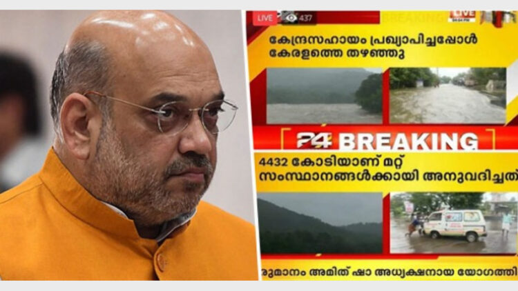 കഴിഞ്ഞ വര്‍ഷം നടന്ന പ്രളയദുരിതാശ്വാസമായി കേരളത്തിന് നല്‍കിയ 2047 കോടി രൂപയില്‍  1,400 കോടി രൂപ പിണറായി സര്‍ക്കാര്‍ ഇതുവരെ ഉപയോഗിച്ചിട്ടില്ല. ഇത്തവണ പ്രളയം ഉണ്ടായപ്പോള്‍ അടിയന്തിര ധനസഹായമായി 52.27 കോടി രൂപ  കേന്ദ്രസര്‍ക്കാര്‍ കേരളത്തിന് നല്‍കിയിരുന്നു. ഇത് മറച്ചുവെച്ചാണ് 24 ന്യൂസിന്റെ വ്യാജവാര്‍ത്ത. ഈ വര്‍ഷമാദ്യം കര്‍ണാടകം നേരിട്ട അതിരൂക്ഷ വരള്‍ച്ചയ്‌ക്ക് കേന്ദ്ര സര്‍ക്കാര്‍ ദേശീയ ദുരന്ത നിവാരണ ഫണ്ടില്‍ നിന്ന് ഇന്നലെ തുക അനുവദിച്ചിരുന്നു. ചുഴലിക്കാറ്റില്‍ തകര്‍ന്ന ഒഡീഷയ്‌ക്ക് 3338.22 കോടി രൂപയും മണ്ണിടിച്ചിലില്‍ തകര്‍ന്ന ഹിമാചലിന് 64.49 കോടി രൂപയുമാണ് കേന്ദ്ര ആഭ്യന്തര മന്ത്രി അമിത് ഷായുടെ അധ്യക്ഷതയില്‍ ചേര്‍ന്ന ഉന്നതാധികാര സമിതി അനുവദിച്ചത്. എന്നാല്‍ ഇപ്പോള്‍ പ്രളയക്കെടുതികള്‍ നേരിടുന്ന കേരളമടക്കമുള്ള 11 സംസ്ഥാനങ്ങള്‍ നാശനഷ്ടങ്ങളുടെ കണക്കുകള്‍ സമര്‍പ്പിച്ച ശേഷമാണ് കേന്ദ്ര സഹായം പ്രഖ്യാപിക്കുക. ഇക്കാര്യം മറച്ചുവച്ചാണ് 24 ന്യൂസിന്റെ വ്യാജ പ്രചാരണം. 2018-19ല്‍ കേരളമടക്കമുള്ള സംസ്ഥാനങ്ങള്‍ക്ക് ദുരന്ത നിവാരണ ഫണ്ടിലേക്ക് 9,658 കോടി രൂപയാണ് അനുവദിച്ചത്. 2019-20ല്‍ കേരളവും കര്‍ണാടകവും ഒഡീഷയും അടക്കം 24 സംസ്ഥാനങ്ങള്‍ക്കായി 6,104 കോടി രൂപയും ഇതുവരെ നല്‍കിയിട്ടുണ്ട്.
