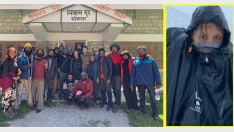 ചോലയ്ക്കു ശേഷം സനല്കുമാര് ശശിധരന് സംവിധാനം ചെയ്യുന്ന കയറ്റം എന്ന ചിത്രത്തിന്റെ ഷൂട്ടിങ്ങിന്റെ ഭാഗമായാണ് മഞ്ജു വാര്യര് ഉള്പ്പെടുന്ന സംഘം ഹിമാചലിലെ മണാലിയില് നിന്നും 100 കിലോമീറ്റര് അകലെയുള്ള ഛത്രു എന്ന സ്ഥലത്ത് എത്തിയത്. ചിത്രീകരണത്തിന്റെ ഭാഗമായി കഴിഞ്ഞ മൂന്നാഴ്ച്ചയായി ഇവര് ഹിമാചലില് ഉണ്ട്. സനല്കുമാറും മഞ്ജുവുമടക്കം മുപ്പതോളം പേരാണ് സംഘത്തിലുണ്ടായിരുന്നത്. കനത്ത മഴയും മണ്ണിടിച്ചിലും കാരണം യാത്ര തുടരാനാകാത്ത അവസ്ഥയിലായിരുന്നു കഴിഞ്ഞ കുറച്ചു ദിവസങ്ങളിലായി ഇവര്. ഈ പ്രദേശത്തെ ടെലിഫോണ്, വൈദ്യുതി, ഇന്റര്നെറ്റ് ബന്ധവും തകരാറിലായിരുന്നു. മഞ്ജു വാര്യരുടെ സഹോദരന് മധു വാര്യരാണ് ഷൂട്ടിങ് സംഘം ഹിമാചലില് കുടുങ്ങിക്കിടക്കുകയാണെന്ന വിവരം മാധ്യമങ്ങളെ അറിയിച്ചത്. ഷൂട്ട് പൂര്ത്തിയാകാത്തതിനാല് കഴിഞ്ഞ ദിവസം ഛത്രുവില് തന്നെ തുടര്ന്ന സംഘത്തെ ബുധനാഴ്ച്ച ഉച്ചയോടെ കോക്സാര് ബേസിലെത്തിച്ചുവെന്നും മണാലിയിലേക്കു പുറപ്പെട്ടിട്ടുണ്ട്.