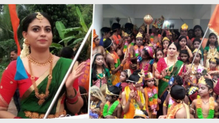 വിമര്‍ശനങ്ങളുടെ മുനയൊടിച്ചു; ബാലഗോകുലത്തിന്റെ ജന്മാഷ്ടമി ആഘോഷത്തില്‍ ഭാരതാംബയായി വീണ്ടും അനുശ്രീ