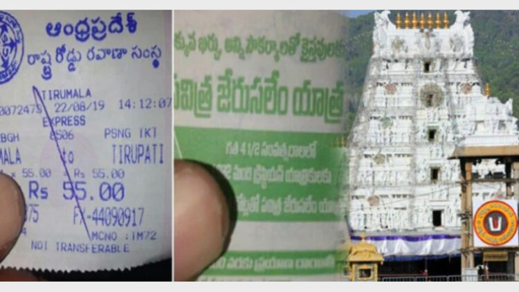 ഹൈദരാബാദ് : ഹജ്ജ്- ജറുസലേം തീര്‍ത്ഥാടനത്തിന്റെ പരസ്യവുമായി തിരുപ്പതിയിലെ ആന്ധ്രാ പ്രദേശ് റോഡ് ട്രാന്‍സ്‌പോര്‍ട് കോര്‍പ്പറേഷന്റെ ബസ് ടിക്കറ്റുകള്‍. ഇത് വിവാദമായതോടെ ടിക്കറ്റുകള്‍ പിന്‍വലിച്ച് എപിആര്‍ടിസി. കഴിഞ്ഞ ദിവസം ക്ഷേത്രനഗരമായ തിരുപ്പതിയില്‍ നിന്നും തിരുമലയിലേക്ക് എപിആര്‍ടിസി ബസില്‍ യാത്ര ചെയ്തവര്‍ക്കാണ് ഈ ടിക്കറ്റ് ലഭിച്ചത്.