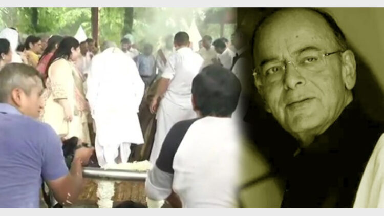 ന്യൂദല്‍ഹി : ശനിയാഴ്ച അന്തരിച്ച ബിജെപി നേതാവും മുന്‍ കേന്ദ്രമന്ത്രിയുമായ അരുണ്‍ ജെയ്റ്റ്ലിയുടെ മൃതദേഹം സംസ്‌കരിച്ചു. നിഗം ബോധ്ഘട്ടില്‍ പൂര്‍ണ്ണ ഔദ്യോഗിക ബഹുമതികളോടെയാണ് സംസ്‌കരിച്ചത്. ഉപരാഷ്‌ട്രപതി വെങ്കയ്യ നായിഡു, അമിത് ഷാ, രാജ്നാഥ് സിങ്, സ്മൃതി ഇറാനി, ജെ.പി. നദ്ദ, ബി.എസ്. യെദിയൂരപ്പ, എല്‍.കെ. അദ്വാനി എന്നിവര്‍ അവസാനമായി പ്രിയ നേതാവിന് അന്തിമോപചാരം അര്‍പ്പിച്ചു.