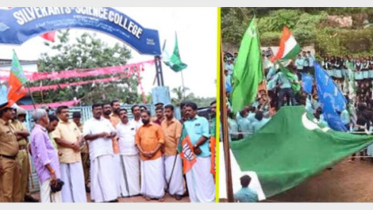 പേരാമ്പ്ര: പേരാമ്പ്ര സില്വര് ആര്ട്സ് കോളജില് കെഎസ്യു,എംഎസ്എഫ് തെരഞ്ഞെടുപ്പ് പ്രകടനത്തിനിടെ പാക്കിസ്ഥാന് പതാക വീശിയതിനെതിരെ പ്രതിഷേധം ശക്തം. കോളജിനുള്ളില് നടന്ന പ്രകടനത്തിന്റെ ദൃശ്യങ്ങള് സാമൂഹ്യ മാധ്യമങ്ങളിലൂടെയാണ് പ്രചരിച്ചത്. പാക്കിസ്ഥാന് പതാകയുമായി വിദ്യാര്ത്ഥികളില് ചിലര് മുദ്രാവാക്യം വിളിക്കുന്ന ദൃശ്യങ്ങളാണ് പുറത്തായത്.