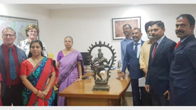 ന്യൂദല്ഹി : ഇന്ത്യയില് നിന്നും മോഷ്ടിച്ച് ആസ്ട്രേലിയയിലേക്ക് കടത്തിയ പഴക്കം ചെന്ന നടരാജ വിഗ്രഹം തിരിച്ചെത്തിച്ചു. തമിഴ്നാട് കല്ലിടയ്ക്കുറിച്ചയില് നിന്നും കാണാതായ 600 വര്ഷം പഴക്കമുള്ള വിഗ്രഹമാണ് തിരിച്ചെത്തിയത്.