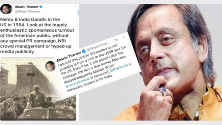നെഹ്രുവിനും ഇന്ദിരയ്‌ക്കും യുഎസില്‍ വന്‍ സ്വീകരണം ലഭിച്ചിട്ടുണ്ടെന്ന് ട്വീറ്റ് ചെയ്ത് പൊങ്കാല ഏറ്റുവാങ്ങി ശശി തരൂര്‍; ട്വീറ്റില്‍ നല്‍കിയത് സോവിയ്റ്റ് യൂണിയനിലെ ചിത്രം, ഒപ്പം ഇന്ദിരയ്‌ക്ക് നല്‍കിയത് ഇന്ത്യയെന്നും