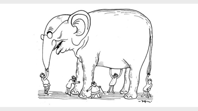 ശങ്കറിന്റെ ഒരു കാർട്ടൂൺ   ഗാന്ധിജിയെ ബ്രിട്ടീഷ് ഭരണാധിപൻ വില്ലിങ്ടൺ പ്രഭു തുറുങ്കിലടക്കുന്നതാണ്. തിരിഞ്ഞു നോക്കുന്ന ബ്രിട്ടീഷുകാരൻ അന്ധാളിക്കുന്നു. മുന്നിലെ  ജനക്കൂട്ടത്തിൽ ഓരോരുത്തരും ഗാന്ധിജിയായി മാറിയിരിക്കുന്നു..! അന്ധന്മാർ ആനയെ കണ്ടതുപോലെ ഗാന്ധിജിയെയും രാഷ്‌ട്രീയക്കാരെയും അവതരിപ്പിച്ച അബുവിന്റെ പ്രശസ്തമായ കാർട്ടൂൺ, ഒരു വരയിൽ രാഷ്‌ട്രപിതാവിനെ വരച്ച രംഗയുടെ രചനയും കുട്ടികൾക്ക് കൗതുകമായി.