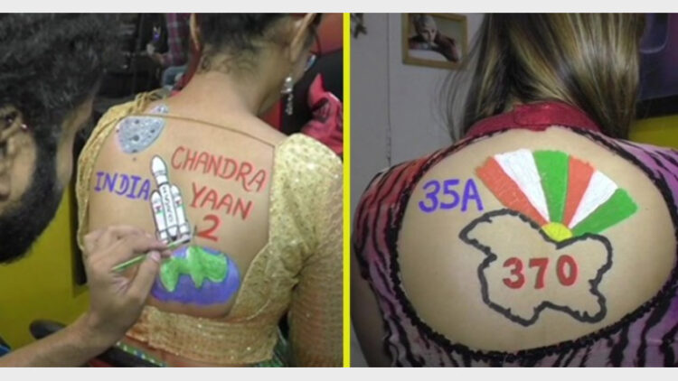 സൂററ്റ്: ഭാരതമെമ്പാടും നവരാത്രി ഉത്സവത്തിന്റെ തയ്യാറെടുപ്പുകള് നടക്കുമ്പോഴാണ് സൂറത്തിലെ ഒരു കൂട്ടം വനിതകള് ആഘോഷങ്ങള്ക്ക് പുതിയ മുഖം നല്കിയത്. ചന്ദ്രയാന് -2 മുതല് റോഡ് സുരക്ഷ, ആര്ട്ടിക്കിള് 370 വരെയുള്ള നിരവധി വാട്ടര് കളര് ടാറ്റൂകള് ശരീരത്തില് വരച്ചുകൊണ്ടാണ് ഇവര് നവരാത്രി ആഘോഷങ്ങളെ വരവേറ്റത്.