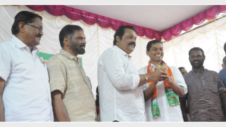 എന്ഡിഎ സ്ഥാനാര്ത്ഥി സി.ജി.രാജഗോപാലിനെയും സുരേഷ് ഗോപി എംപിയേയും കൂറ്റന് ഹാരം അണിയിച്ച് പ്രവര്ത്തകര് സ്വീകരിച്ചു. ബിജെപി ഏരിയ പ്രസിഡന്റ് പി.പി. ഗിരീഷ് അധ്യക്ഷനായി. കേരള കോണ്ഗ്രസ്സ് ചെയര്മാന് പി.സി.തോമസ്, നാഷണലിസ്റ്റ് കോണ്ഗ്രസ്സ് ചെയര്മാന് കുരുവിള മാത്യൂസ്, എന്ഡിഎ നേതാക്കളായ ഉണ്ണിത്താന്, അഹമ്മദ് തോട്ടത്തില്, ബിജെപി ജില്ലാപ്രസിഡന്റ് വി.എന്.വിജയന്, ജനറല്സെക്രട്ടറി എം.എന്.മധു, മഹിളാമോര്ച്ച ജില്ലാ പ്രസിഡന്റ് പത്മജ എസ്.മേനോന് തുടങ്ങിയവര് സംസാരിച്ചു.