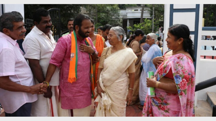 വട്ടിയൂര്‍ക്കാവ്: എന്‍ഡിഎ സ്ഥാനാര്‍ഥി സുരേഷിനെതിരെ ഇടതുവലതു മുന്നണികള്‍ ഉയര്‍ത്തുന്ന അടിസ്ഥാനരഹിതമായ ആരോപണങ്ങള്‍ സമ്മതിദായകര്‍ ‘കടക്ക് പുറത്ത്’ എന്നു പറയുന്ന കാഴ്ചയാണ് വട്ടിയൂര്‍ക്കാവ് മണ്ഡലത്തിലുടനീളം കാണുന്നത്. വാഹനപര്യടനത്തിന്റെ രണ്ടാം ദിവസമായ ഇന്നലെ ആവേശകരമായ വരവേല്‍പ്പാണ് എന്‍ഡിഎ സ്ഥാനാര്‍ഥി സുരേഷിന് എല്ലായിടത്തും നല്‍കിയത്.