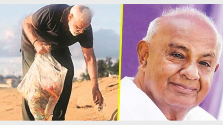 മാമല്ലപുരത്തെ കടല്ത്തീരത്ത് നരേന്ദ്രമോദി നഗ്നപാദനായി നടക്കുന്ന വീഡീയോ കണ്ടു. അതിനിടയിലെ ശുചീകരണ പ്രവൃത്തിയും. പ്ലാസ്റ്റിക് വിമുക്ത ഇന്ത്യയിലേക്കുള്ള യാത്രയ്ക്ക് ഇത് പ്രചോദനാത്മകമായ തുടക്കമാണെന്നായിരുന്നു ഗൗഡയുടെ ട്വീറ്റ്. മുന്പ് ബിജെപിയേയും മോദിയേയും രൂക്ഷമായി വിമര്ശിച്ചിരുന്ന നേതാക്കളില് ഒരാളായിരുന്നു ദേവഗൗഡ. എന്നാല്, അടുത്തിടെ ബിജെപിയെയോ മോദിയേയോ കടന്നാക്രമിക്കാന് ദേവഗൗഡ മുതിരാറില്ല. കൂടാതെ, ഗുജറാത്തില് എത്തിയ സര്ദാര് വല്ലഭായി പട്ടേലിന്റെ പ്രതിമ, സ്റ്റാച്യു ഓഫ് യൂണിറ്റി സന്ദര്ശിച്ച ചിത്രങ്ങള് ദേവഗൗഡ ട്വീറ്റ് ചെയ്തിരുന്നു. ഇതിനു പ്രധാനമന്ത്രി നരേന്ദ്ര മോദി റീട്വീറ്റും ചെയ്തിരുന്നു. നമ്മുടെ മുന് പ്രധാനമന്ത്രി ദേവഗൗഡജി സ്റ്റാച്യു ഓഫ് യൂണിറ്റി സന്ദര്ശിച്ചതില് സന്തോഷമെന്നായിരുന്നു മോദിയുടെ ട്വീറ്റ്.