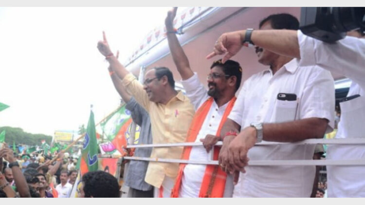 മഞ്ചേശ്വരം: നിയോജക മണ്ഡലം ഉപതെരെഞ്ഞെടുപ്പില് എന്ഡിഎ സ്ഥാനാര്ത്ഥി രവീശ തന്ത്രി കുണ്ടാറിന്റെ കൊട്ടിക്കലാശം ആവേശം നിറഞ്ഞതായി മാറി. ഡിജെ സബ്ദ വിന്യാസം കുമ്പള നഗരത്തെ പ്രകമ്പനം കൊള്ളിച്ചു. ബിജെപി ദേശീയ നിര്വ്വാഹക സമിതി അംഗം പി.കെ.കൃഷ്ണദാസിന്റെയും ജില്ലാ പ്രസിഡന്റ് അഡ്വ.കെ. ശ്രീകാന്തിന്റെയും അനന്ദ നൃത്തം ഏവരേയും ഹര്ഷപുളകിതമാക്കി. അഭിവൃദ്ധിട് രാജകീയ ഇജ്ജ( വികസനത്തില് രാഷ്ട്രീയമില്ല)…മോദിജി പണ്ടേറ് യാന് പ്രധാനമന്ത്രി അത്ത്..നൂറ്റമപ്പകോട്ടി ഭാരതീയറ്ന പ്രധാന സേവകി. അഞ്ചനെ യാന് ഗല്ത്ത്ണ്ട ഷാസകെ അത്ത്… നിക്ലെനാ സേവകി.. (മോദിജി പറഞ്ഞു ഞാന് പ്രധാനമന്ത്രിയല്ല. 130 കോടി ഭാരതീയരുടെ പ്രധാന സേവകന്. അതുപോലെ മഞ്ചേശ്വരത്ത് നിന്ന് ഞാന് ജയിച്ചാല് ജനങ്ങളുടെ സേവകനായിരിക്കും).. തുളുവില് രവീശ തന്ത്രി കുണ്ടാറിന്റെ പ്രസംഗം കൂടിയായപ്പോള് കൊട്ടിക്കലാശത്തിന്റെ അവസാന നിമിഷങ്ങള് അത് എന്ഡിഎയുടെ വിജയ തരംഗത്തിന്റെ സൂചനകള് വിളിച്ചോതുന്നതായി മാറി. എല്ഡിഎഫിന്റെയും യുഡിഎഫിന്റെയും കൊട്ടിക്കാലശത്തെ കവച്ച് വെക്കുന്നതരത്തില് പൂക്കാവടി, നാസിക് ബാന്റ് എന്നിവ കൊഴുപ്പേകി.