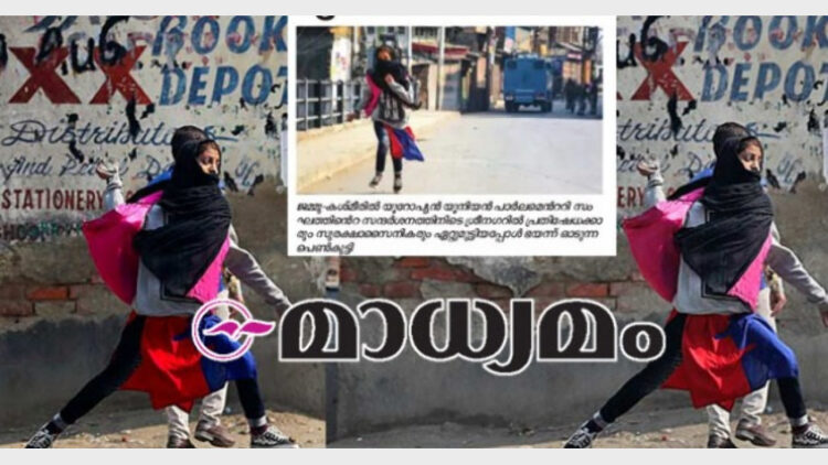 ചൊവ്വാഴ്ച യൂറോപ്യന്‍ യൂണിയന്‍ പ്രതിനിധികള്‍ കശ്മീര്‍ സന്ദര്‍ശിച്ച് സ്ഥിതിഗതികള്‍ വിലയിരുത്താനായി എത്തിയിരുന്നു. അവിടെ പ്രതിഷേധവുമായി കുറച്ചുപേര്‍ സംഘടിച്ചെത്തിയിരുന്നു. ഇവരെ തടഞ്ഞ സൈന്യത്തെ കല്ലെറിഞ്ഞ് ഓടുന്ന പെണ്‍കുട്ടിയാണ് ഇത്തരത്തില്‍ വിവാദമായത്. കല്ലെറിഞ്ഞ് ഓടിയ പെണ്‍കുട്ടിക്ക് പകരം, പ്രതിഷേധക്കാരും സൈന്യം ഏറ്റുമുട്ടുന്നത് കണ്ട് ഭയന്നോടിയ പെണ്‍കുട്ടി എന്നാണ് മാധ്യമം അടിക്കുറുപ്പ് നല്‍കിയത്.