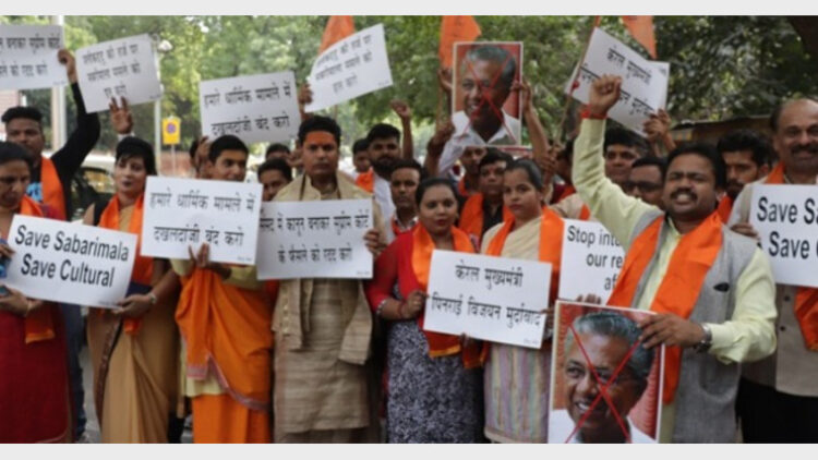 ന്യൂദല്ഹി: ശബരിമല യുവതി പ്രവേശനം സംബന്ധിച്ച പുനഃപരിശോധനാ ഹര്ജികള് സുപ്രിം കോടതി ഏഴംഗ ബഞ്ചിന്റെ പരിഗണനയ്ക്ക് വിട്ടതോടെ കോടതി പരിസരത്ത് പ്രാര്ത്ഥനയുമായി അയ്യപ്പ വിശ്വാസികള്. നേരത്തെ പ്രഖ്യാപിച്ച യുവതി പ്രവേശന വിധിയില് പിശുകുണ്ടെന്നും തിരുത്തലുകള് ആവശ്യമുണ്ടെന്നും സുപ്രിം കോടതി തത്വത്തില് സമ്മതിച്ചാതായാണ് വിശ്വസികളുടെ വിലയിരുത്തല്. ഇതേ തുടര്ന്ന് കോടതിക്ക് വെളിയില് അയ്യപ്പ വിശ്വാസികള് ആഹ്ലാദപ്രകടനം നടത്തി.
