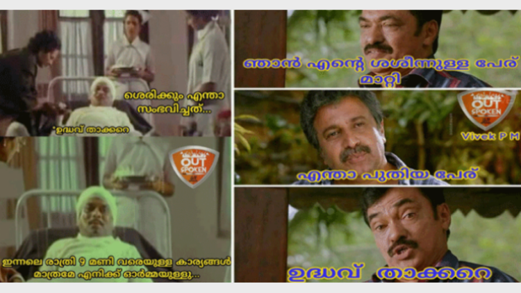 ‘ശരിക്കും എന്താ സംഭവിച്ചത്… ഇന്നലെ രാത്രി ഒമ്പത് മണി വരെയുള്ള കാര്യങ്ങളെ എനിക്ക് ഓര്മ്മയുള്ളു’ എന്ന കിലുക്കത്തിലെ ജഗതി ശ്രീകുമാറിന്റെ ഡയലോഗുകളും ലൂസിഫറിലെ ബൈജുവിന്റെ ഡയലോഗുകളുമെല്ലാം ശിവസേനയെ പരിഹസിക്കാനുള്ള ആയുധങ്ങളായി സമൂഹമാധ്യമങ്ങളിലെ ട്രോളര് ഉപയോഗിക്കുമ്പോള് നിര്ത്താതെ ചിരിക്കാതിരിക്കാന് കഴിയില്ല സന്ദര്ശകര്ക്ക്.