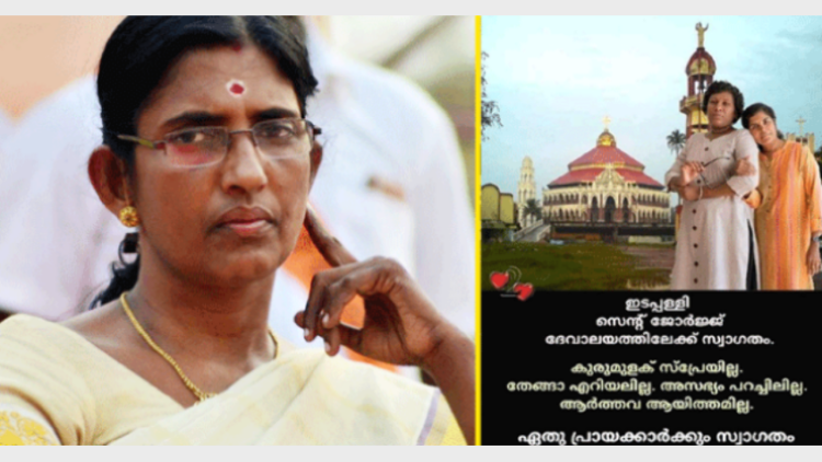 തിരുവനന്തപുരം: ഇടപ്പള്ളി സെന്റ് ജോര്ജ്ജ് പള്ളിയിലേക്ക് സ്വാഗതം എന്നരീതിയില് സമൂഹമാധ്യമങ്ങളില് പ്രചരിച്ച പരസ്യചിത്രത്തിനെതിരെ ഹിന്ദു ഐക്യവേദി സംസ്ഥാന അധ്യക്ഷ കെ.പി. ശശികല ടീച്ചര്.