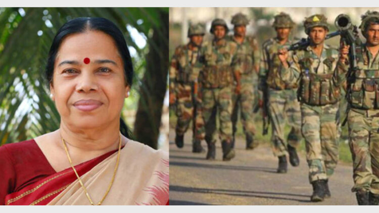 സിപിഎം പോഷക സംഘടനായ ജനാധിപത്യ മഹിളാ അസോസിയേഷന്റെ യോഗത്തിലാണ് ശ്രീമതി പട്ടാളക്കാരെ അധിക്ഷേപിച്ചത്. ശ്രീമതിയുടെ നാക്ക് നിയന്ത്രിക്കാന് പാര്ട്ടിക്ക് കഴിയണം. ക്ഷേത്രദര്ശനം നടത്തുന്ന സ്ത്രീകളെയും ശ്രീമതി പലതവണ അധിക്ഷേപിച്ചിട്ടുണ്ട്. സ്വന്തം പാര്ട്ടിയിലെ നേതാക്കള് നടത്തുന്ന സ്ത്രീ പീഡനം മറച്ചുവെച്ചാണ് ശ്രീമതി പട്ടാളക്കാരെ അധിക്ഷേപിച്ചത്.