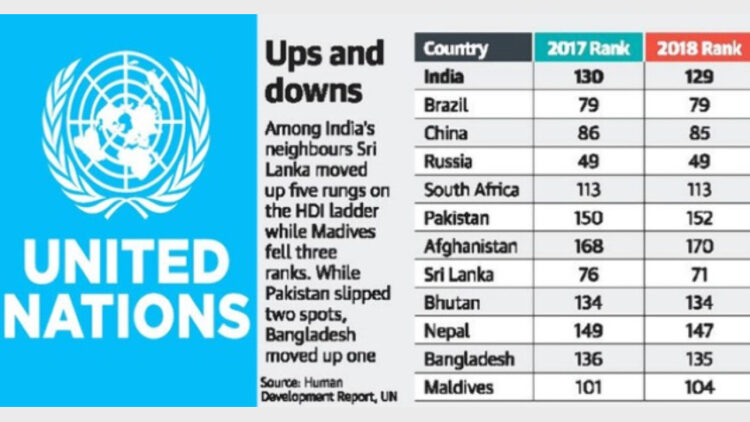 ന്യൂദല്ഹി : യുഎന് പുറത്തുവിട്ട വികസന സൂചികയില്(എച്ച്ഡിആര്) ഇന്ത്യ മുന്നോട്ട് വളര്ന്നതായി കണക്കുകള്. യുഎന്നിന്റെ മാനുഷിക വികസന സൂചികയിലാണ് ഇന്ത്യ മുന്നേറിയിട്ടുള്ളതായി കണ്ടെത്തിയിരിക്കുന്നത്.