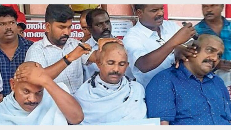 ശമ്പളം കിട്ടാത്തതില്‍ പ്രതിഷേധിച്ച് കെഎസ്ആര്‍ടിസി ജീവനക്കാര്‍ തലമുണ്ഡനം ചെയ്തു; ഭരണപക്ഷയൂണിയനുകള്‍ പന്തലുകെട്ടി നടത്തുന്ന സമരം പ്രഹസനമെന്ന് വെല്‍ഫെയര്‍ അസോസിയേഷന്‍