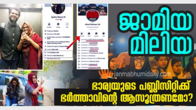 പൗരത്വ ബില്ലിനെതിരായ പ്രക്ഷോഭങ്ങളിലൂടെ അയിഷ റെന്നയെ പ്രശസ്തയാക്കാന്‍ ഭര്‍ത്താവ് അഫ്‌സല്‍ റഹ്മാന്‍; സോഷ്യല്‍ മീഡിയ പൊളിച്ചടുക്കുന്നത് ഗൂഢാലോചനയുടെ പുതിയ രീതികള്‍