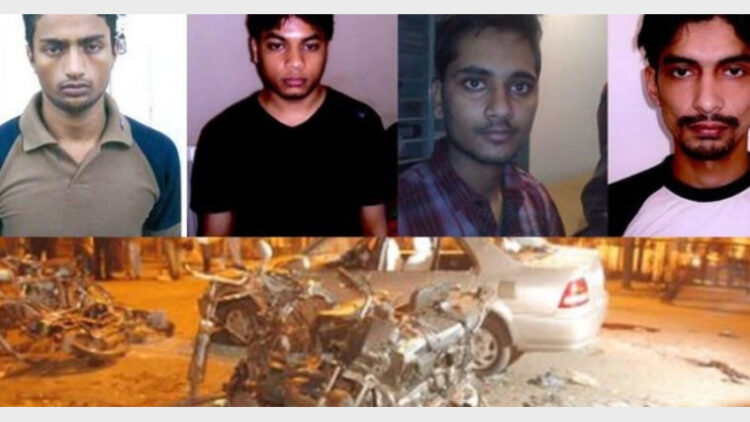 പന്ത്രണ്ട് പ്രതികളാണ് കേസില് ഉള്പ്പെട്ടിട്ടുള്ളത്. കേസിലെ മൂന്ന് പ്രതികള് ഇപ്പോഴും ഒളിവിലാണ്. സാജിദ് ബഡ, എംഡി ഖാലിദ്, ശരണ് എന്ന മാനിക് എന്നിവരാണ് ഒളിവിലുള്ള പ്രതികള് . ആരിസ് ജുനൈദ്, അസദുള്ള അക്തര്, ഹദ്ദി, അഹ്മദ് സിദ്ദി അഥവാ യാസിന് ഭട്കല് എന്നിവര് തിഹാര് ജയിലില് ആണ്. കേസിലെ മറ്റ് രണ്ട് പ്രതികളായ എംഡി ആതിഫ് എന്ന മാമു, സാജിദ് ചോട്ട എന്നിവര് പോലിസുമായുള്ള ഏറ്റുമുട്ടലില് കൊല്ലപ്പെടുകയും ചെയ്തു.