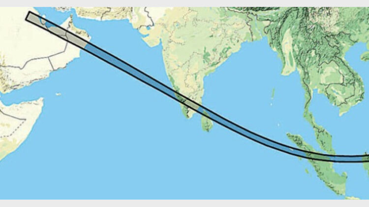ഇതിനു പുറമെ ദക്ഷിണേന്ത്യ, ലക്ഷദ്വീപ്, വടക്കന്‍ സുമാത്ര, ദക്ഷിണ മലേഷ്യ തുടങ്ങിയ പ്രദേശങ്ങളിലൂടെയും ഈ പാത കടന്നുപോകുന്നു. ഈ പാതയുടെ ഇരുവശത്തുമായി ആയിരക്കണക്കിന് കിലോമീറ്റര്‍ വീതിയില്‍ ഇതേസമയം ഭാഗിക സൂര്യഗ്രഹണവും ദൃശ്യമാകും.
