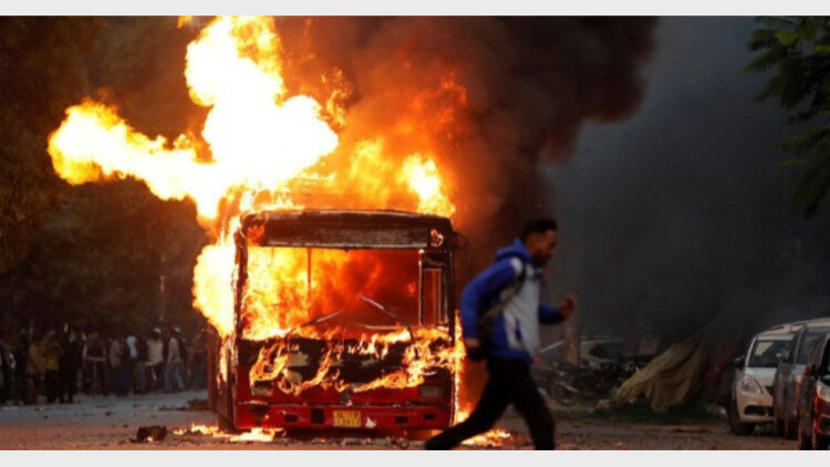 ജാമിയയില്‍ പോലീസ് ബസ്സുകള്‍ കത്തിച്ചു