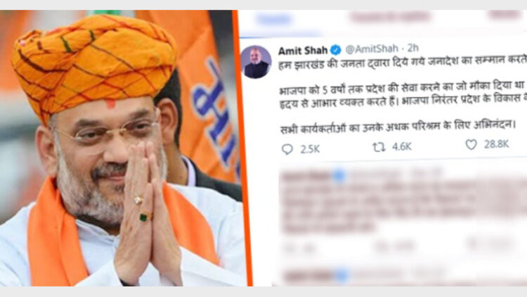ന്യൂദല്ലി : ജാര്ഖണ്ഡ് നിയമസഭ തെരെഞ്ഞെടുപ്പിലെ ജനവിധിയെ അംഗീകരിക്കുവെന്ന് ബിജെപി അധ്യക്ഷന് അമിത് ഷാ. അഞ്ചുവര്ഷം ഭരിക്കാനായി ബിജെപിക്ക് അവസരം നല്കിയ ജാര്ഖണ്ഡിലെ ജനങ്ങള്ക്ക് ഹൃദയം നിറഞ്ഞ നന്ദി. ജാര്ഖണ്ഡിന്റെ തുടര് വികസനത്തിന് പ്രതിജ്ഞാബദ്ധരായി ബിജെപി അനുവര്ത്തിക്കുമെന്നും പ്രതികരിച്ച അദ്ദേഹം പ്രവര്ത്തകരുടെ കഠിനാദ്ധ്വാനത്തിന് നന്ദി അറിയിക്കുന്നതായും പറഞ്ഞു. ട്വിറ്ററിലൂടെയായിരുന്നു അദ്ദേഹത്തിന്റെ പ്രതികരണം.