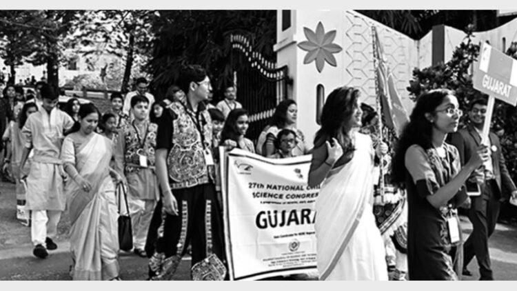 തിരുവനന്തപുരം: ഇരുപത്തിയേഴാമത് ദേശീയ ബാലശാസ്ത്ര കോണ്‍ഗ്രസിന്റെ ഭാഗമായി നാലാഞ്ചിറ മാര്‍ ഇവാനിയോസ് കോളേജിന് മുന്നില്‍ നിന്ന് ആരംഭിച്ച ഘോഷയാത്ര ഇന്ത്യയുടെ നാനാത്വത്തില്‍ ഏകത്വം എന്ന സവിശേഷത വിളിച്ചോതുന്നതായി. ബാലശാസ്ത്ര കോണ്‍ഗ്രസിനായി വിവിധ സംസ്ഥാനങ്ങളില്‍ നിന്നായെത്തിയ കുട്ടികളും അധ്യാപകരും ഉള്‍പ്പെടെ ആയിരത്തോളം പേര്‍ ഘോഷയാത്രയില്‍ അണിനിരന്നു.