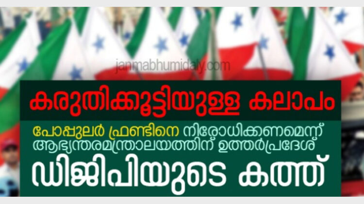ലഖ്നൗ: പൗരത്വ ഭേദഗതി നിയമത്തിനെതിരായ പ്രതിഷേധങ്ങളില്‍ കരുതിക്കൂട്ടി കലാപം അഴിച്ചുവിട്ടത് പോപ്പുലര്‍ ഫ്രണ്ടാണെന്നും കണ്ടെത്തിയെന്നും അതുകൊണ്ട് തന്നെ ജിഹാദി സംഘടനയെ നിരോധിക്കണമെന്നും ഉത്തര്‍പ്പരദേശ് ഡിജിപി ഒ.പി. സിങ്. കേന്ദ്ര ആഭ്യന്തര മന്ത്രാലയത്തിന് അയച്ച കത്തിലാണ് ഉത്തര്‍പ്രദേശ് ഡിജിപി ഇതു സംബന്ധിച്ച കാര്യം വ്യക്തമാക്കിയിരിക്കുന്നത്. പോപ്പുലര്‍ ഫ്രണ്ട് പ്രവര്‍ത്തകരാണെന്ന് അന്വേഷണത്തില്‍ കണ്ടെത്തിയതിനെ തുടര്‍ന്നാണ് നടപടി.
