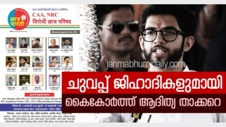 ജാമിയ മിലിയ ഇസ്ലാമിയ വിദ്യാര്ഥി നേതാവ് ഹമാദൂര് റഹ്മാന്, എഎംയുഎസ്യു പ്രസിഡന്റ് സല്മാന് ഇംത്യാസ് എന്നിവരുടെ പേരുകളും പരിപാടിയുടെ നോട്ടീസില് ചേര്ക്കപ്പെട്ടിട്ടുണ്ട്. കൊടുംഭീകരന് അഫ്സല് ഗുരുവിന്റെ ദയാഹര്ജിയില് ഒപ്പുവച്ച ജാവേദ് അഖ്തറും പൗര്തവ നിയമത്തിനെതിരായ പരിപാടിയില് പങ്കെടുക്കുന്നുണ്ട്. ഇവരോടൊപ്പം കോണ്ഗ്രസ്, എന്സിപി നേതാക്കളുടെ സാന്നിധ്യം അതിശയിപ്പിക്കുന്നില്ല. എന്നാല് ബാല്താക്കറെയുടെ കൊച്ചുമോനും മഹാരാഷ്ട്ര സര്ക്കാരിലെ മന്ത്രിയുമായ ആദിത്യ താക്കറെ ഇത്തരമൊരു പരിപാടിയില്, അതും ദേശവിരുദ്ധ മതതീവ്രവാദികള്ക്കൊപ്പം വേദി പങ്കിടുന്നുണ്ടെന്ന് അറിയുന്നതാണ് ഞെട്ടിക്കുന്ന കാര്യം.