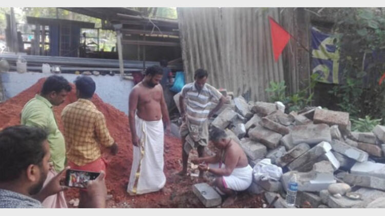 ഇരുട്ടിന്റെ മറവില്‍ ജെസിബി കൊണ്ട് ക്ഷേത്രം ഇടിച്ചു നിരത്തി; 24 മണിക്കൂറിനുള്ളില്‍ ക്ഷേത്രം പുനര്‍നിര്‍മിച്ച് ഹൈന്ദവസംഘടനകള്‍
