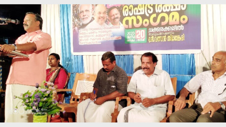 രാഷ്ട്രരക്ഷാ സംഗമം ന്യൂനപക്ഷ മോര്ച്ച സംസ്ഥാന വൈസ് പ്രസിഡന്റ് സി.കെ. കുഞ്ഞിമുഹമ്മദ് ഉദ്ഘാടനം ചെയ്തു. കേണല് രാമദാസ് അധ്യക്ഷത വഹിച്ചു. കെ.പി. ഹരീഷ് ബാബു, അഡ്വ. ആതിര എന്നിവര് സംസാരിച്ചു. രാഷ്ട്രരക്ഷ സംഗമത്തിന് മുന്നോടിയായി പൗരത്വ ഭേദഗതി നിയമത്തെ അനുകൂലിച്ച് ആയിരങ്ങള് പങ്കെടുത്ത പ്രകടനവും നടന്നു.