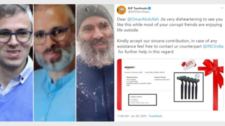താടി വടിക്കാതെ കഴിയുന്ന ഒമര്‍ അബ്ദുള്ളയ്‌ക്ക് ഷേവിങ് സെറ്റ് പാഴ്‌സലായി അയച്ചു നല്‍കി ബിജെപി തമിഴ്‌നാട് ഘടകം