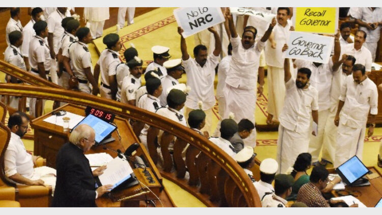 പൗരത്വ നിയമ ഭേദഗതിക്കെതിരായ സമരത്തില്‍ ആരുമുന്നില്‍, ആരു പിന്നില്‍ എന്ന് തെളിയിക്കാനുള്ള മത്സരമാണ് കേരള നിയമസഭയില്‍ ഇന്നലെ അരങ്ങേറിയത്. കോണ്‍ഗ്രസ് പാര്‍ട്ടിയും അവര്‍ക്കൊപ്പം നില്‍ക്കുന്നവരും കേരള നിയമസഭയുടെ ചരിത്രത്തില്‍ സമാനതകളില്ലാത്ത നെറികെട്ട പ്രതിഷേധം നടത്തുകവ ഴി നിയമസഭയുടെ അന്തസ്സ് തകര്‍ക്കുകയാണുണ്ടായതെന്ന കാര്യത്തില്‍ സംശയമേതുമില്ല. വര്‍ഷത്തിലൊരിക്കല്‍ സര്‍ക്കാരിന്റെ നയപ്രഖ്യാപനത്തിന് നിയമസഭയിലെത്തുന്ന ഗവര്‍ണറെ എല്ലാ ആദരവോടും കൂടിയാണ് സഭാംഗങ്ങള്‍ വരവേല്‍ക്കാറ്. നമ്മള്‍ ഇതുവരെ പുലര്‍ത്തി വന്നിരുന്ന എല്ലാ മര്യാദകളെയൂം ഇല്ലായ്‌മചെയ്യുന്ന, നമുക്കുണ്ടെന്ന് നാം കൊട്ടിഘോഷിക്കാറുള്ള സാംസ്‌കാരിക ഔന്ന്യത്തത്തെ തകര്‍ക്കുന്ന നടപടിയാണ് ഇന്നലെ നിയമസഭയില്‍ ഉണ്ടായത്. നാല് വോട്ടിനുവേണ്ടി എന്ത് പേക്കൂത്തും കാട്ടും എന്ന് വിളിച്ചുപറയുകയായിരുന്നു പ്രതിപക്ഷ നേതാവ് രമേശ് ചെന്നിത്തലയും കൂട്ടരും.