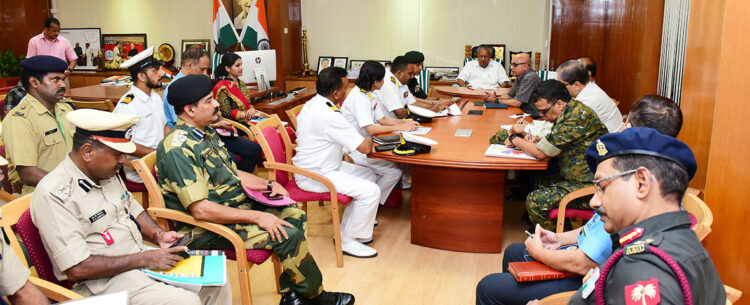 യോഗത്തില്‍ പാങ്ങോട് മിലിറ്ററി സ്റ്റേഷന്‍ കമാണ്ടര്‍ ബ്രിഗേഡിയര്‍ സി. കാര്‍ത്തിക് ശേഷാദ്രി, നാവികസേനയുടെ കൊച്ചി സ്റ്റേഷന്‍ കമാണ്ടര്‍  എന്‍. അനില്‍ ജോസഫ്, കോസ്റ്റ്ഗാര്‍ഡ് ഡി.ഐ.ജി. എസ്. ജെന, ബി.എസ്.എഫ് ഡി.ഐ.ജി ബേബി ജോസഫ്, സിആര്‍പിഎഫ് ഡി.ഐ.ജി ഡോ.എച്ച്.സി. ലിംഗരാജ്, എയര്‍ഫോഴ്‌സ് കമാണ്ടര്‍ വി.വി. ജോഷി, ഐടിബിപി ഡെപ്യൂട്ടി കമാണ്ടന്റ് പി.ഡി. റജി, ചീഫ് സെക്രട്ടറി ടോം ജോസ്, ആഭ്യന്തര വകുപ്പ് അഡീഷണല്‍ സെക്രട്ടറി ഡോ. വിശ്വാസ് മേത്ത, സംസ്ഥാന പോലീസ് മേധാവി ലോക്‌നാഥ് ബെഹ്‌റ, ദുരന്തനിവാരണ അതോറിറ്റി മെമ്പര്‍ സെക്രട്ടറി ഡോ. ശേഖര്‍ കുര്യാക്കോസ് തുടങ്ങിയവര്‍ യോഗത്തില്‍ പങ്കെടുത്തു.