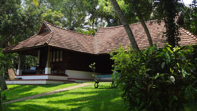 കേരള നിര്മ്മാണ ശൈലിയുടെ സുപ്രധാന രീതിയായ ചെരിഞ്ഞ മേല്ക്കൂരകളും ചുവരില് നിന്ന് പുറത്തേക്ക് നീങ്ങി നില്ക്കുന്ന കഴുക്കോല് ചാട്ടങ്ങളും മഴചാറ്റല് തടയുന്നതോടൊപ്പം വേനല്ക്കാലത്ത് ഉത്തമ വെയില്ത്തടങ്ങളായി മാറുകയും ചെയ്യുന്നു. സൂര്യതാപം, മഴച്ചാറ്റ് എന്നിവയെ കൂടുതല് ആഗിരണം ചെയ്യുന്ന ചുവരുകള് ജനലുകള് വാതിലുകള് എന്നിവയെ കേടുപാടുകളില് നിന്നും സംരക്ഷിക്കുന്നു. നേര് രേഖയിലൂടെയുള്ള ജനല് വാതില് വിന്യാസങ്ങള് മധ്യസൂത്രങ്ങള്ക്ക് വേധം ഇല്ലെന്ന് ഉറപ്പുവരുത്തുന്നതിലൂടെ മുറിയില് സ്വാഭാവികമായ വായു പ്രവാഹം കൊണ്ട് ചൂടിനെ കുറയ്ക്കുന്നു.