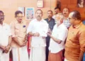 മോദിജിയ്ക്കൊപ്പം പത്മജ (ഇടത്ത്) ആലങ്കോട് ലീലാകൃഷ്ണന്‍ (നടുവില്‍) രാജന്‍ പല്ലന്‍ (വലത്ത്)