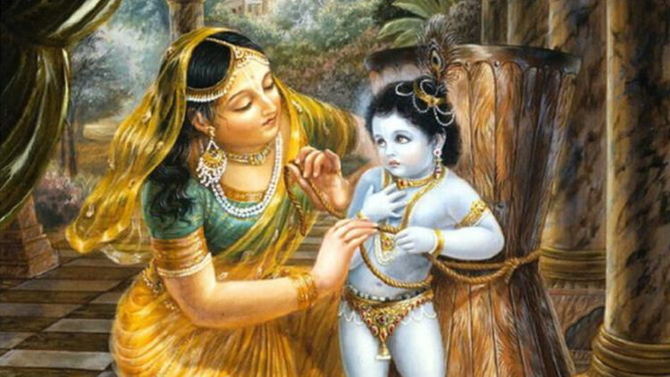 യശോദ ശിക്ഷ വിധിച്ചു നടപ്പിലാക്കി. കണ്ണനെ ഒരു കയറെടുത്ത് ഉരലില് കെട്ടിയിട്ടു.