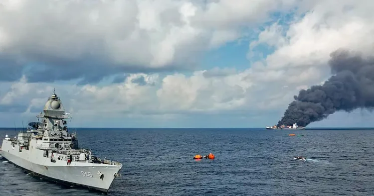 സാല്വേജ് സംഘം ഹെലികോപ്റ്ററില് തീപിടിച്ച കപ്പലില് ഇറങ്ങി. ടഗ് ഉപയോഗിച്ച് കപ്പലിനെ കൂടുതല് ദൂരത്തേക്ക് വലിച്ചു കൊണ്ടുപോകാനാണ് ശ്രമം . കപ്പലിന്റെ മുന്ഭാഗത്തെ തീ അണക്കാന് കഴിഞ്ഞിട്ടുണ്ട്. മറ്റിടങ്ങളിലെ തീ കെടുത്താന് ശ്രമം തുടരുന്നു.