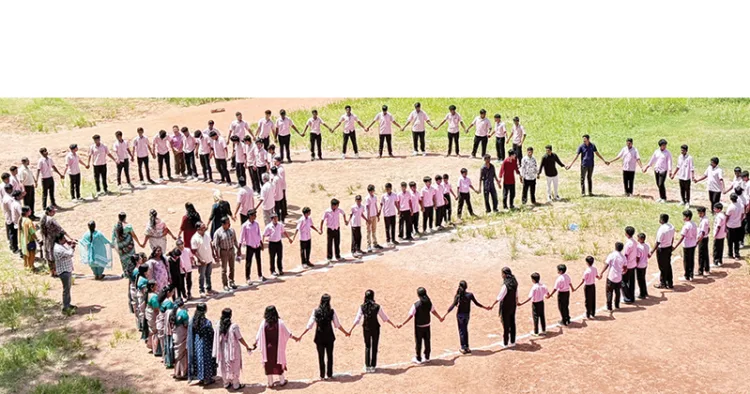 സ്കൂള് മൈതാനത്ത് അറുപതിന്റെ ആകൃതിയിലായിരുന്നു മതില് തീര്ത്തത്. സംഖ്യാകൃതിയും കടന്ന് സ്നേഹമതില് സ്കൂള് കവാടത്തിലേക്ക് നീണ്ടു. വദ്യാര്ത്ഥികള്, ജനപ്രതിനിധികള്, അധ്യാപകര്, സ്കൂള് ജീവനക്കാര്, ബിആര്സി പ്രതിനിധികള്, പൂര്വവിദ്യാര്ത്ഥികള്, ഓട്ടോറിക്ഷാ തൊഴിലാളികള്, രക്ഷിതാക്കള് തുടങ്ങിയവര് മതിലിന്റെ ഭാഗമായി.