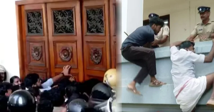 ഉന്നത പോലീസ് ഉദ്യോഗസ്ഥർ സ്ഥലത്തുണ്ടായിരുന്നെങ്കിലും കയ്യുംകെട്ടി നോക്കി നിൽക്കുകയായിരുന്നു. സർവകലാശാലയിലെ പടിക്കെട്ടുകളിലും മറ്റും പ്രവർത്തകർ കുത്തിയിരുന്ന് പ്രതിഷേധിച്ചു. എല്ലാ സുരക്ഷാ സന്നാഹങ്ങളും നിഷ്പ്രയാസം മറികടന്ന് സർവകലാശാല വളപ്പിൽ കയറി പ്രതിഷേധക്കാർ.