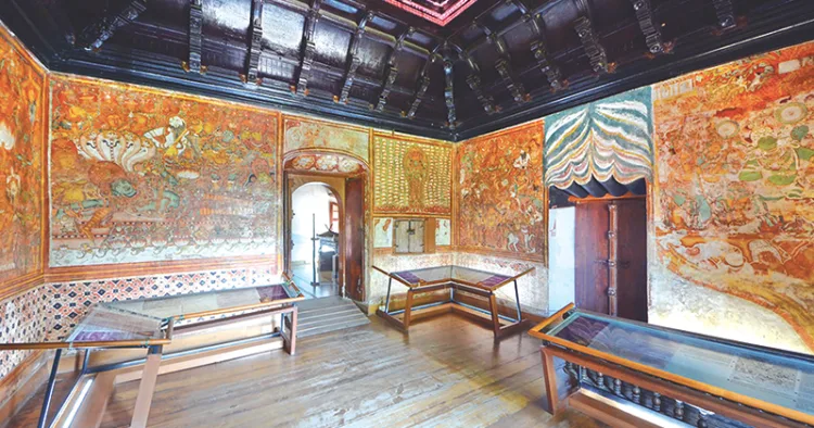 പതിനേഴാം നൂറ്റാണ്ടില് കൊട്ടാരത്തിലെ ദര്ബാറിന് സമീപം രാജാധികാര കിരീടധാരണ ഹാളില് വരച്ച ചുമര്ചിത്ര രാമായണ കഥാവിഷ്കാരം കേരളത്തിലെ സംരക്ഷിത ചിത്രരചനകളിലൊന്നാണ്. ഇലച്ചാര് വര്ണങ്ങളാലുള്ള രാമായണ ചിത്രരചനകള് ആയിരം ചതുരശ്ര അടിയിലാണ് ഒരുക്കിയിരിക്കുന്നത്. രാമായണ കഥാവിഷ്കാരങ്ങള് ഒപ്പിയെടുത്തിരിക്കുന്ന ഈ ചുമര്ചിത്രങ്ങള് ചരിത്രപരമായും ദൃശ്യവിസ്മയത്താലും ഏറെ പ്രശസ്തമാണ്. കൊട്ടാര ചിത്രം എന്നാണ് കൊച്ചി മട്ടാഞ്ചേരിയിലെ കൊട്ടാരക്കാഴ്ചകളെ വിശേഷിപ്പിക്കുന്നത്. 1557ല് തകര്ന്ന കൊട്ടാരം 1650 കളില് ഡച്ചുകാര് പുനര്നിര്മിച്ച് കൊച്ചി രാജവംശത്തിന് കൈമാറിയെന്നും 1660കളില് പ്രകൃതിദത്ത കൂട്ടുകളുടെ നിറച്ചാര്ത്തില് രാജാക്കന്മാര് രചിച്ചതാണിവയെന്നുമാണ് ഗവേഷകര് പറയുന്നത്.