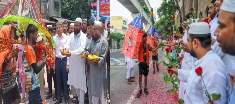 ലക്നൗ : കാവിയുടുത്ത് സിന്ദൂരം തൊട്ട് എത്തിയ കൻവാരിയകളെ പൂക്കൾ ചൊരിഞ്ഞ് സ്വാഗതം ചെയ്യുന്ന മുസ്ലീം വിശ്വാസികൾ . ഉത്തർപ്രദേശിൽ കഴിഞ്ഞ ദിവസം കണ്ട ഏറ്റവും മനോഹര കാഴ്‌ച്ചയാണിപ്പോൾ സോഷ്യൽ മീഡിയയിൽ വൈറലാകുന്നത് .