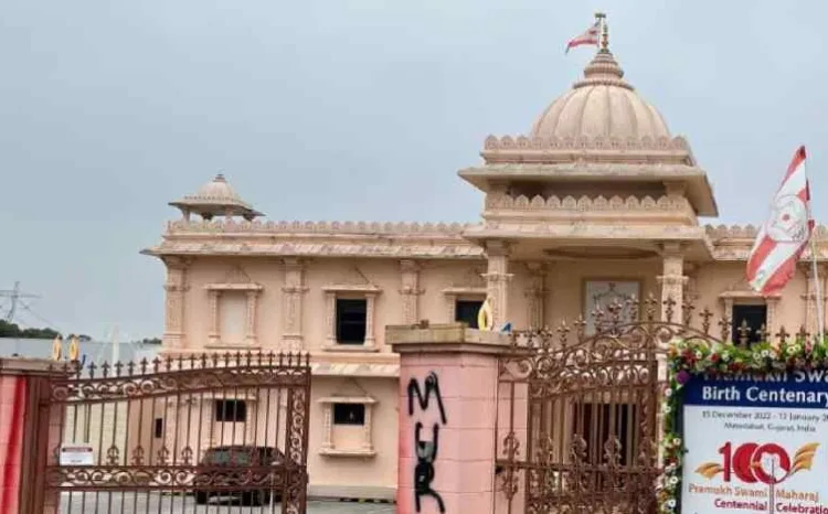 പ്രസിദ്ധമായ സ്വാമിനാരായൺ ക്ഷേത്രത്തിന്റെ ചുവരിലാണ് ‘ വിട്ടുപോകുക’ എന്ന് ഭാരതീയരെ ഉദ്ദേശിച്ചുള്ള ചുവരെഴുത്തുകൾ വന്നത്.