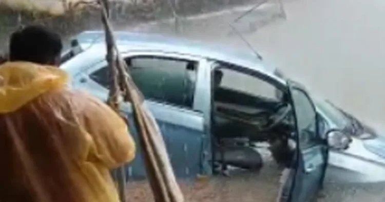 കാറിന്റെ മുന്ഭാഗം കുഴിയില് വീണതോടെ വാഹനം നിര്ത്തിയതിനാല് ഒഴുക്കില്പ്പെട്ടില്ല. സമീപവാസികള് ഓടിയെത്തി കാറില് ഉണ്ടായിരുന്നവരെ സുരക്ഷിതമായി പുറത്തിറക്കി. പിന്നീട് ക്രെയിന് എത്തിച്ചാണ് വാഹനം വെള്ളക്കെട്ടില് നിന്നും പുറത്തെടുത്തത്.