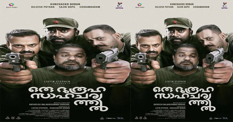 ഇരു വശത്തും തോക്കുധാരികളായി കുഞ്ചാക്കോ ബോബനും ചിദംബരവും .