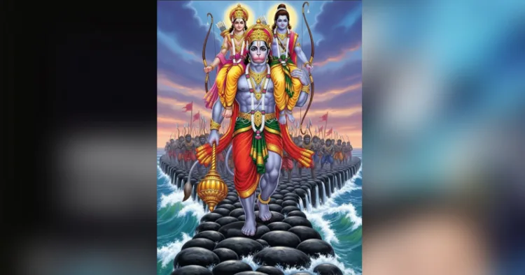 പുണ്യകരമായ സമുദ്രത്തിന് കുറുകേ പാലം നിര്മ്മിച്ചവനും കണക്കില്ലാത്തത്ര ശിതാശനന്മാരെ (രാക്ഷസന്മാരെ) സംഹരിച്ചവനും പത്തു തലയുള്ള രാവണനെ അതിധീരമായി കാലപുരിയിലേയ്ക്ക് അയച്ചവനും അഗ്നിയില് പരിശുദ്ധി തെളിയിച്ച ജനകപുത്രിയോടു കൂടി സാകേതത്തിലേയ്ക്ക് തിരിച്ചു വന്നവനും വിശ്വപാലകനായി, പത്മനാഭനായി പട്ടാഭിഷേകം ചെയ്ത് വിലസിതനായ(ശ്രീരാമചന്ദ്രനെ ഞാന് വിഭാവനം ചെയ്യുന്നു എന്ന് പല്ലവിയോട് അന്വയിക്കണം).